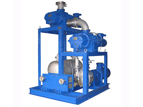 罗茨水环真空机组 由罗茨泵作为主泵,水环泵作为前级泵组成的抽气系统。通过真空继电器或电接点压力表,可实现罗茨泵、液环泵的自动启停,自动过载保护。根据不同的极限压力要求,有不同方案可供选择:水环双罗茨机组、双级水环罗茨机组、多级罗茨多级水环机组。